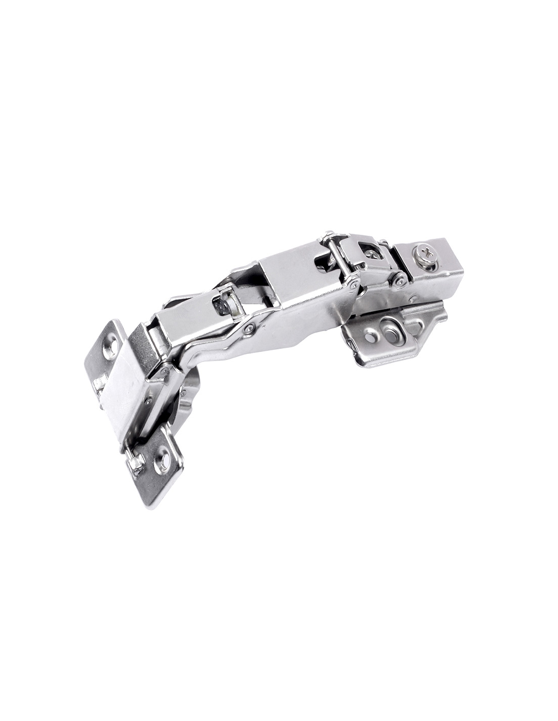 Charnière encastrée en alliage de zinc, résistante et discrète pour mobilier.