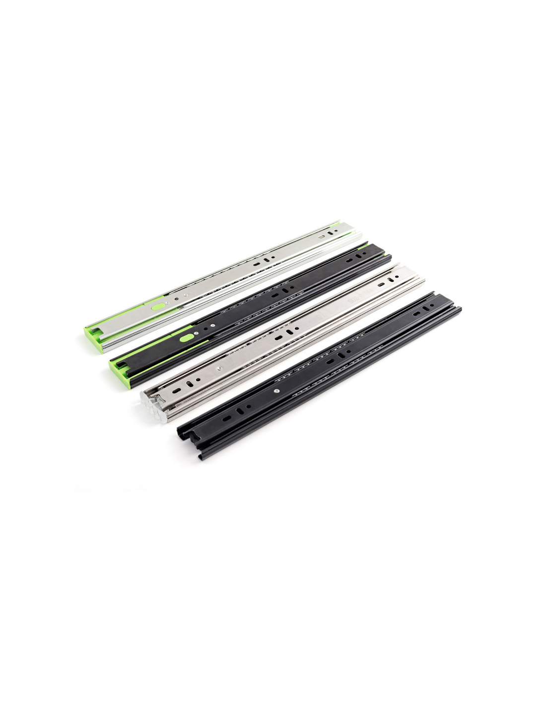 Glissière à billes avec verrouillage sécurisé.